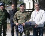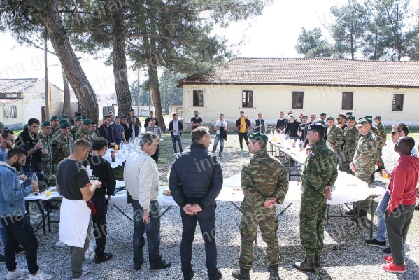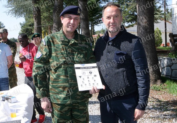 Ακολούθησε μικρή δεξίωση εκ μέρους της Ε’ ΜΚ προς την αποστολή της Δόξας Δράμας όπου η Διοίκηση της Μονάδος ανέλυσε το σκεπτικό του εμβλήματος «Ο ΤΟΛΜΩΝ ΝΙΚΑ» και αντηλλάγησαν αναμνηστικά λάβαρα.