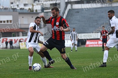 Οι Θεσσαλοί, λοιπόν, μπήκαν αποφασισμένοι να πάρουν θετικό αποτέλεσμα στην έδρα των «Μαυραετών» και στο 3′ από σέντρα του Γιαννίτση ο Καπός με κεφαλιά δεν μπόρεσε να σκοράρει. Η Δόξα απάντησε με άστοχο σουτ του Μπαϊκαρά έπειτα από σέντρα του Μαρκόπουλου. Το ματς είχε αρκετά σκληρά μαρκαρίσματα και τους φιλοξενούμενους να απειλούν εκ νέου στο 19′ με κεφαλιά του Καπού.