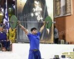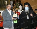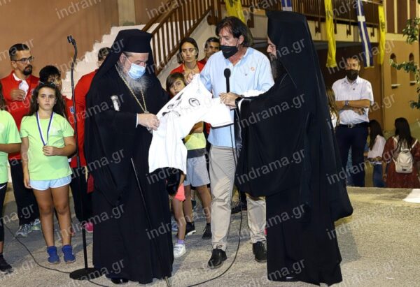 Στη συνέχεια, στο πλαίσιο των Γ’ ΧΡΥΣΟΣΤΟΜΕΙΩΝ, ακολούθησαν τρεις αθλητικοί αγώνες στίβου (σφαίρα, μήκος άνευ φοράς και άρση βαρών) στην αυλή της Εκκλησίας όπου συμμετείχαν δεκάδες παιδιά που γυμνάζονται στο παρακείμενο δημοτικό στάδιο Δράμας το οποίο ανακατασκευάζεται, καθώς και οι αθλητές ΑΜΕΑ του συλλόγου “ΑΓΩΝΙΣΤΕΣ”. Επίσης, παρουσιάστηκε το Ε’ πρόγραμμα κοινωνικού αθλητισμού, δωρεάν μαθημάτων ποδοσφαίρου κατά τη διάρκεια του καλοκαιριού που διοργανώνει κάθε χρόνο ο Ναός του Αγίου Χρυσοστόμου σε συνεργασία με την σχολή ποδοσφαίρου “KASDO” του παλαιμάχου ποδοσφαιριστή του Ολυμπιακού και της Δόξας Δράμας Αντώνη Κασδοβασίλη, πολύτιμου συνεργάτη της ενορίας, και τους συνεργάτες του Παρασκευά Άντζα και Γεωργίου Μιχαηλίδη. Τιμώμενο πρόσωπο της βραδιάς ήταν ο ολυμπιονίκης Πύρρος Δήμας που ήρθε να συνεορτάσει τον Άγιο Χρυσόστομο, ο οποίος επέδωσε στους αθλητές κύπελλα, μετάλλια και επαίνους. Ο Μητροπολίτης Παύλος απένειμε τιμητική πλακέτα στον χρυσό ολυμπιονίκη για την προσφορά του στον αθλητισμό και εξήρε την προσωπικότητα και το ήθος του βορειοηπειρώτη πρωταθλητή. Ακολούθησε δεξίωση στους εξώστες του Ναού.