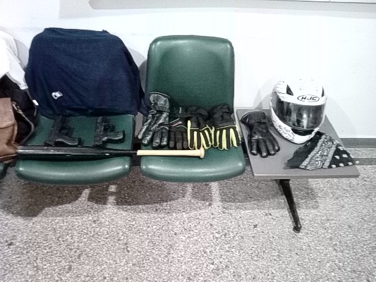Οι δράστες δεν συμμορφώθηκαν στο σήμα στάσης των αστυνομικών αναπτύσσοντας ιλιγγιώδη ταχύτητα και παραβιάζοντας φωτεινούς ερυθρούς σηματοδότες για να αποφύγουν την σύλληψη, πλην όμως οι αστυνομικοί επιστράτευσαν την εμπειρία τους και κατάφεραν να εγκλωβίσουν το όχημα στην έξοδο της πόλης, όπου και συνέλαβαν τους δύο νεαρούς δράστες, στην κατοχή τους και ειδικότερα εντός του οχήματος ανευρέθησαν ένα κράνος μοτοσικλετιστή, Full Face τύπου μπαντάνα, (για να καλύπτουν τα χαρακτηριστικά του προσώπου τους) τρία ζεύγη γάντια ,ένα μπαστούνι του baseball, και δύο όπλα ρέπλικες.