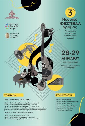 Ξεκίνησε το 3ο ΜΟΥΣΙΚΟ ΦΕΣΤΙΒΑΛ ! Αφιερωμένο στη λαϊκή και παραδοσιακή μουσική ! Πάρκο Γλυπτών Διοικητηρίου Δράμας-Μουσικό Σχολείο, 28 & 29 Απριλίου/Περιφερειακή Ενότητα Δράμας/Π.Α.Μ.Θ.